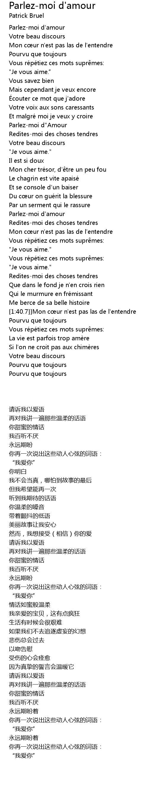 | [1:40.7]] | Mon c ur n' est pas las de l' entendre |
