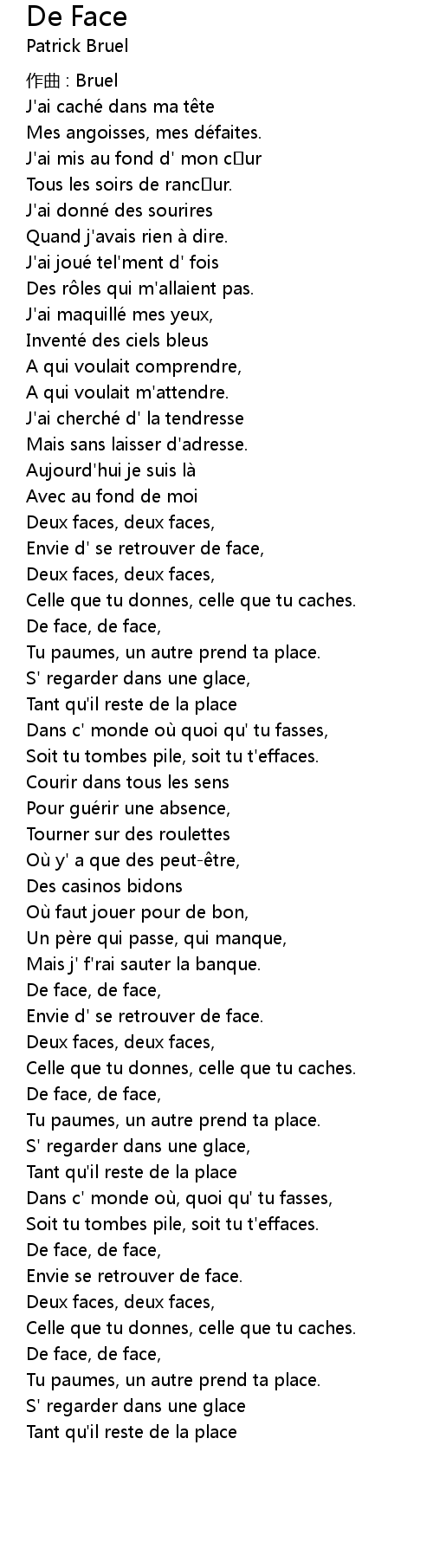 | Deux faces, deux faces, | |