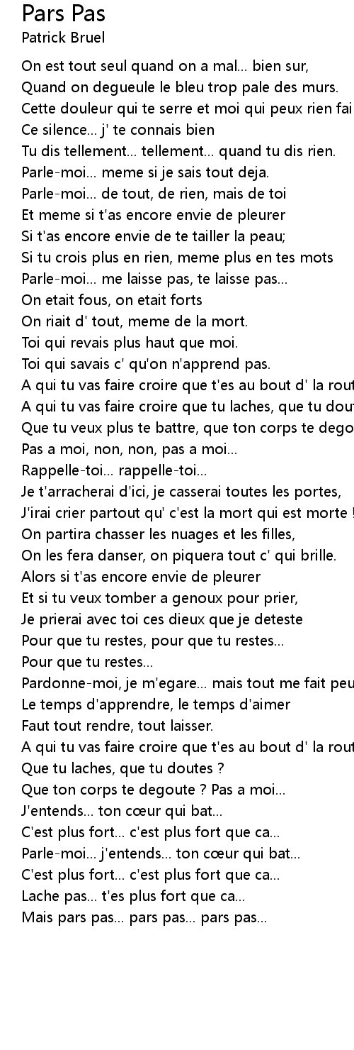 | Pour que tu restes, pour que tu restes... | |