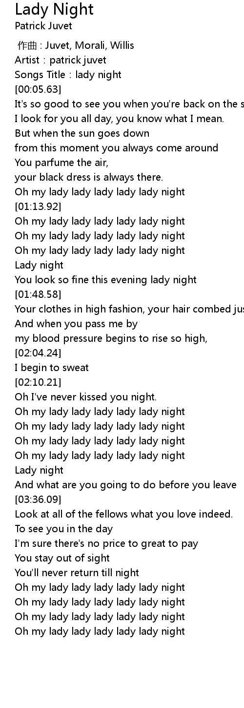 | [01:22.47] | Oh my lady lady lady lady lady night |