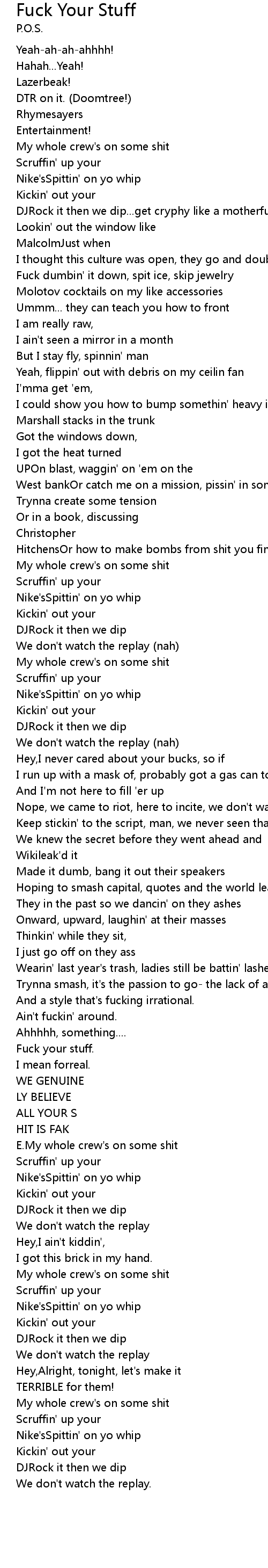 Nope, we came to riot, here to incite, we don't want any of your stuff. |