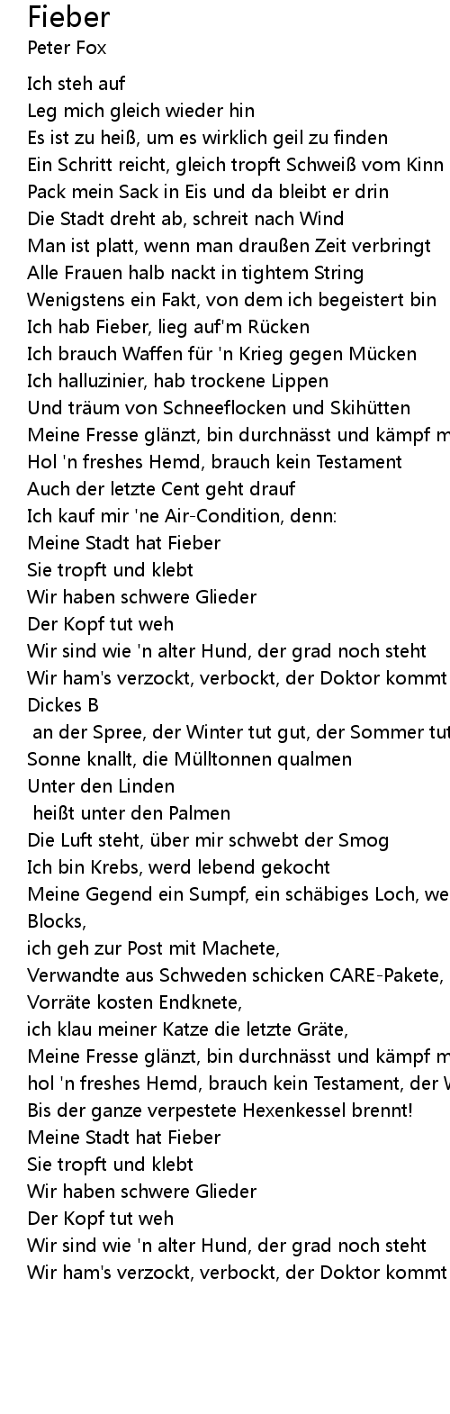 | Ich hab Fieber, lieg auf'm Rücken | |