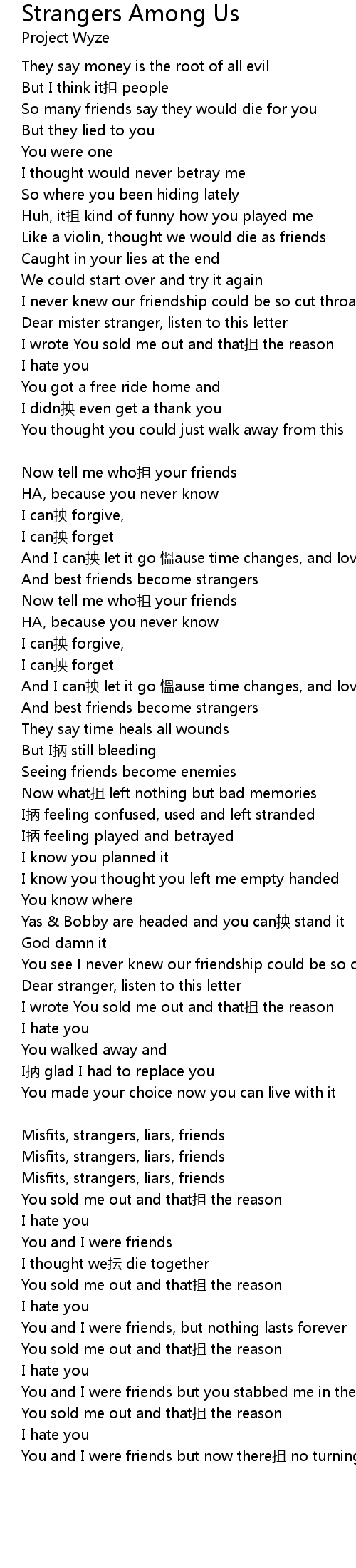 | You and I were friends but now there抯 no turning back [Chorus] |