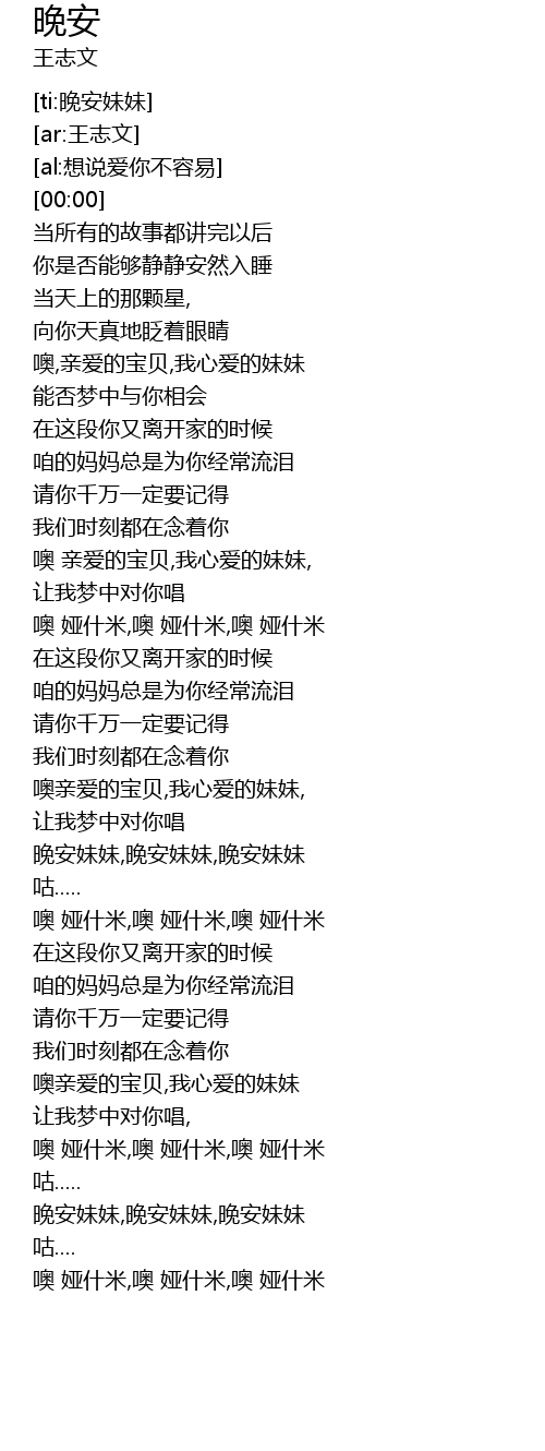 | [02:27.37] | 晚安妹妹,晚安妹妹,晚安妹妹 |