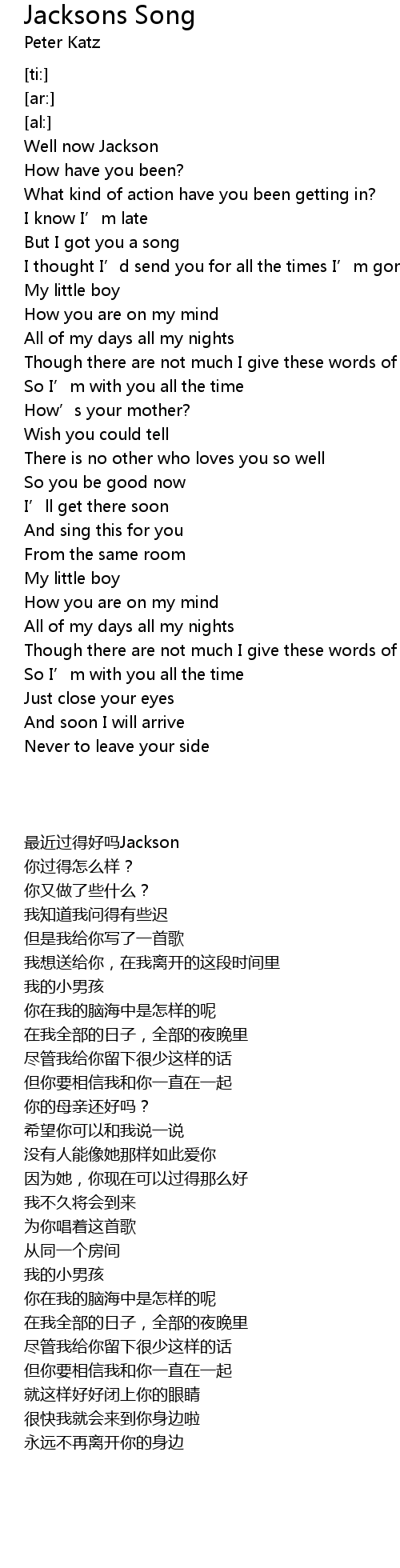 | [00:18.01] | 最近过得好吗Jackson |