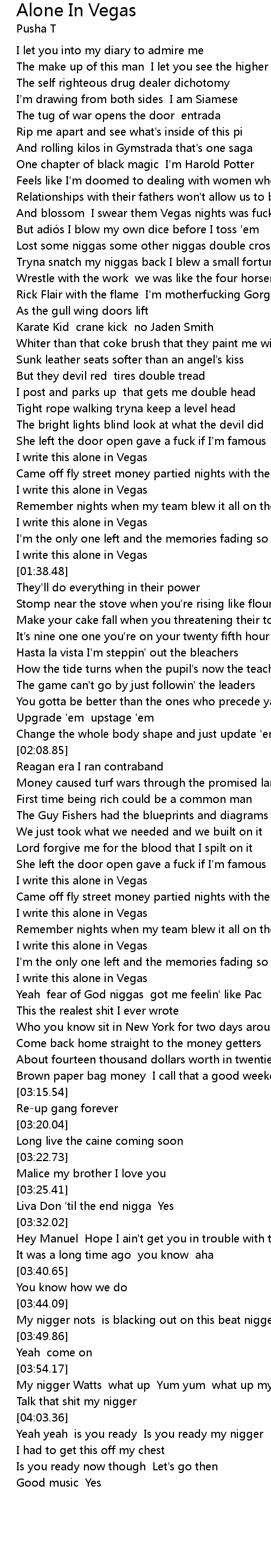 | [03:56.86] | My nigger Watts what up Yum yum what up my nigger |