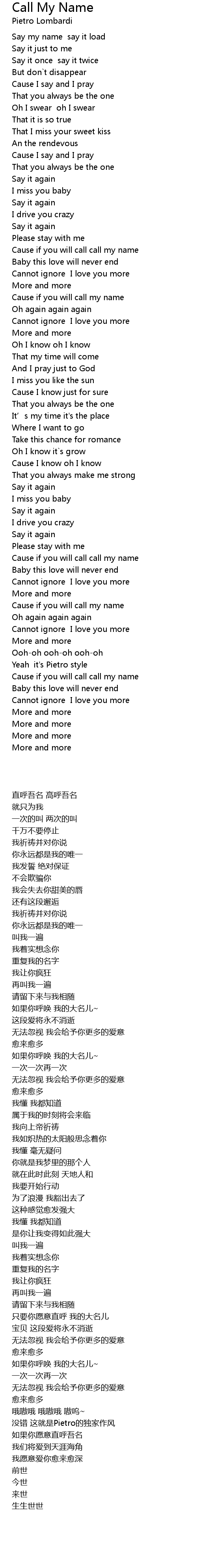 | 歌曲 | Call My Name |
