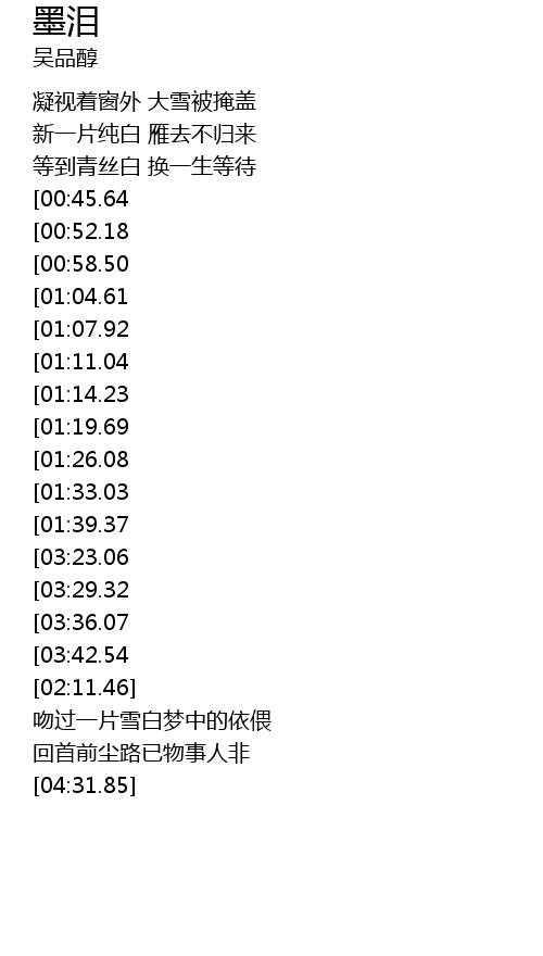 | [00:33.06] | 新一片纯白 雁去不归来 |