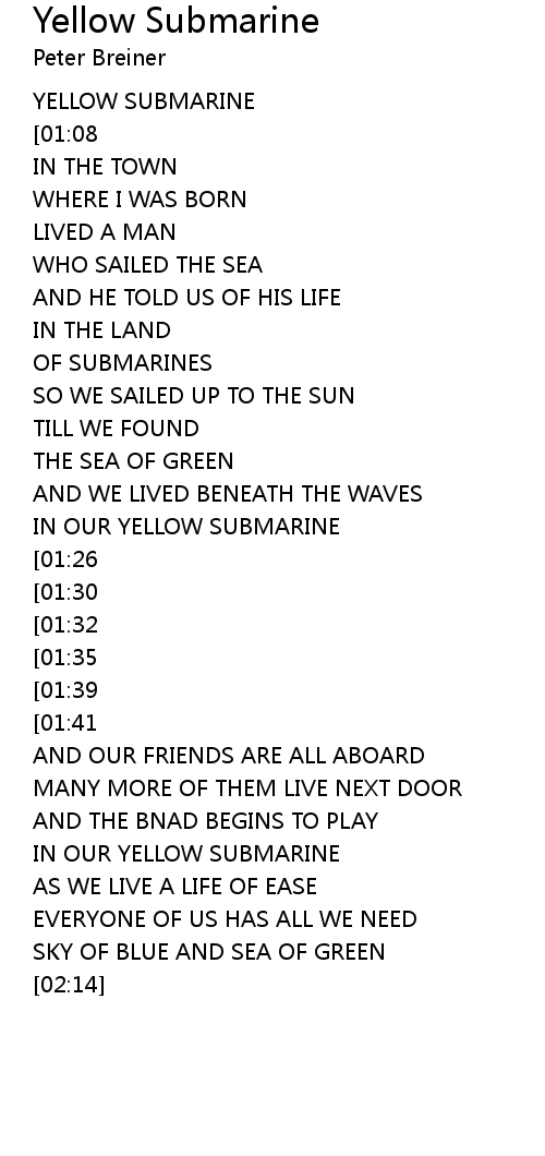 | [01:22] | IN OUR YELLOW SUBMARINE |