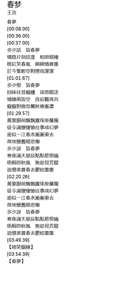 | [00:38.50] | 多少話 皆春夢 |