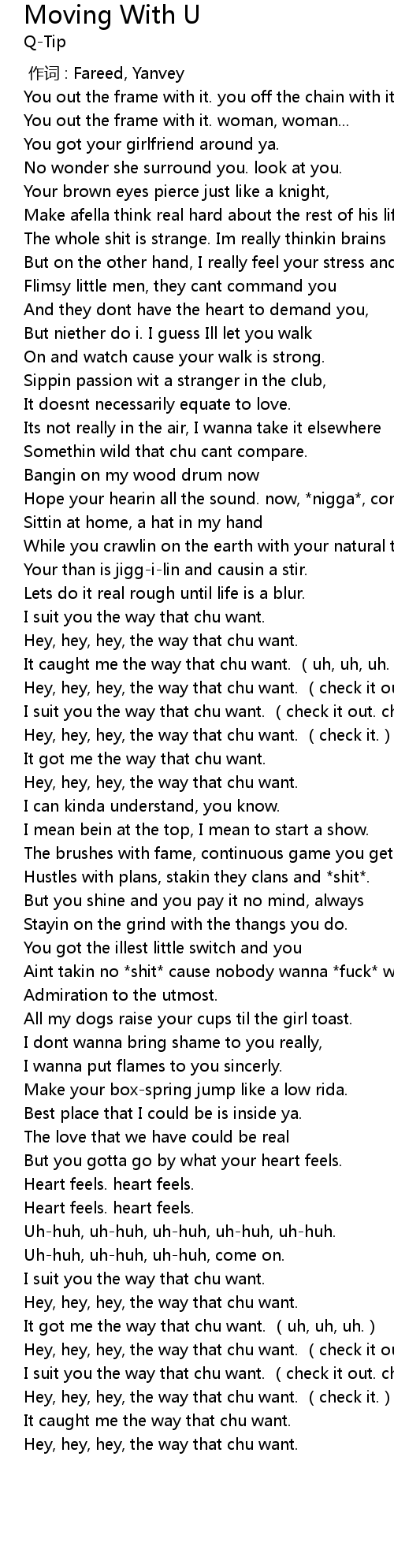 | [01:17.56] | It caught me the way that chu want. (uh, uh, uh.) |