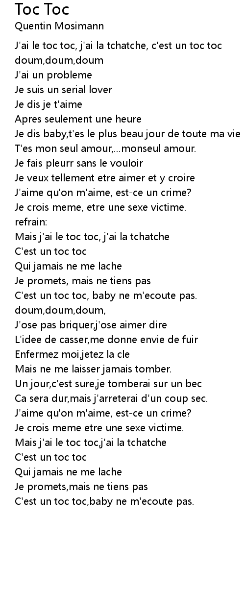 J'ai le toc toc, j'ai la tchatche, c'est un toc toc |