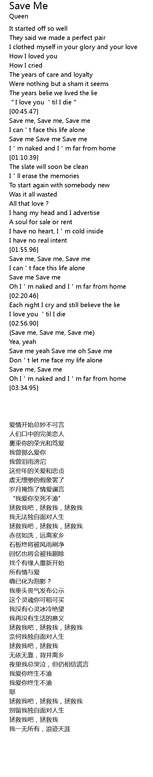| [03:11.79] | Save me yeah Save me oh Save me |