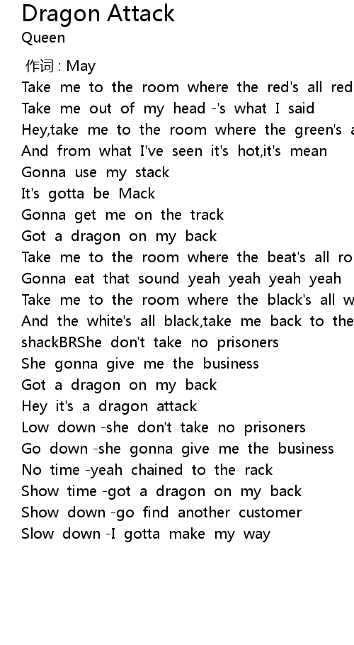 | [01:19.93] | And the white' s all black, take me back to the shack shackBRShe don' t take no prisoners |