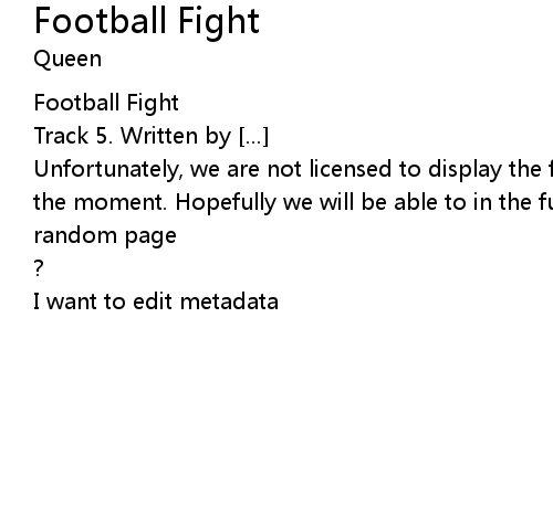 | Unfortunately, we are not licensed to display the full lyrics for this song at the moment. Hopefully we will be able to in the future. Until then, how about a | |