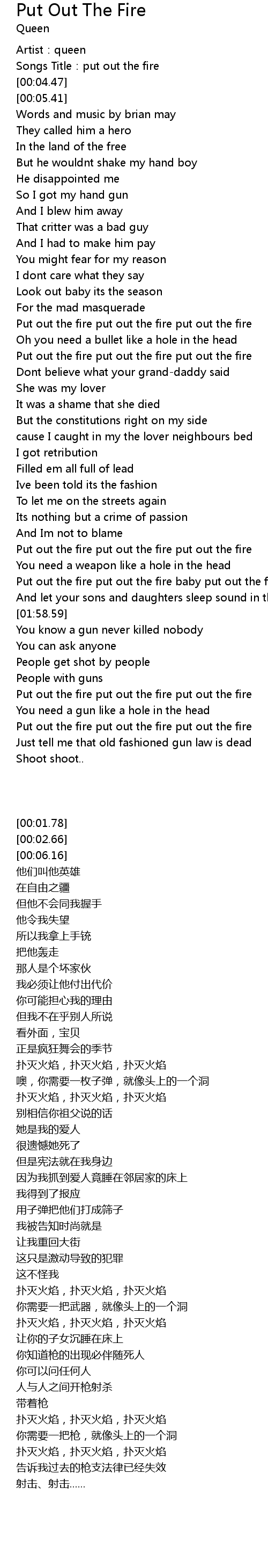 | [02:41.79] | Put out the fire put out the fire put out the fire |