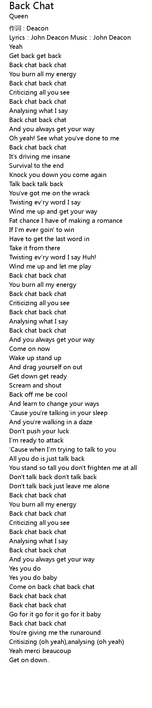 | 歌曲 | Back Chat |