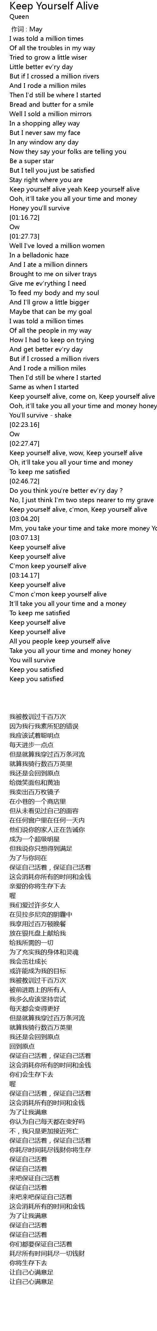 | [02:58.39] | Keep yourself alive, c'mon, Keep yourself alive |