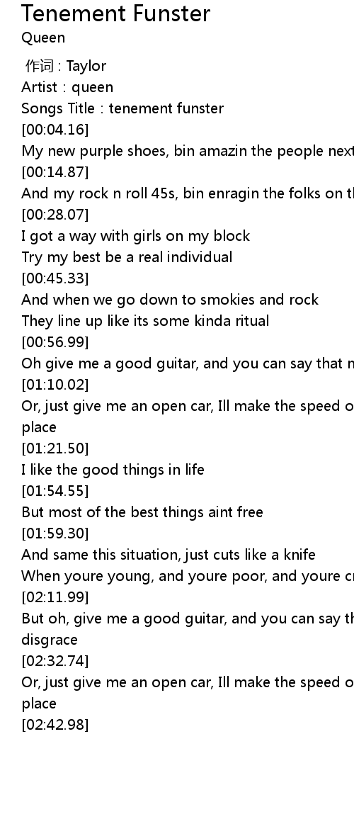 | [00:01.86] | Songs Title:tenement funster |