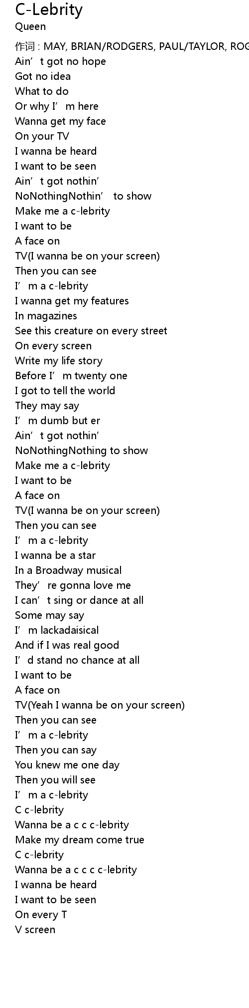 | 作词 : MAY, BRIAN/RODGERS, PAUL/TAYLOR, ROGER | |