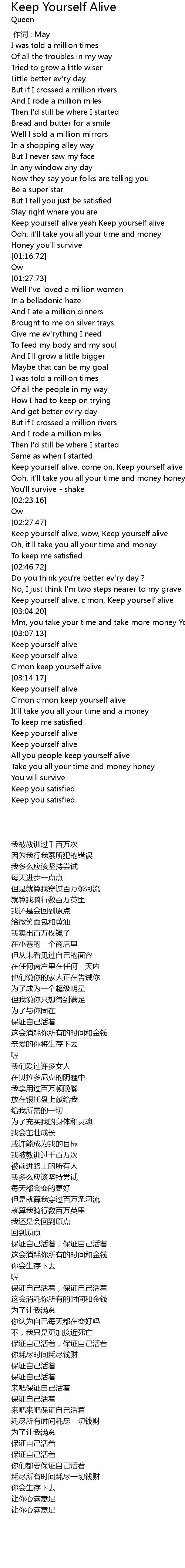 | [03:22.36] | Keep yourself alive |