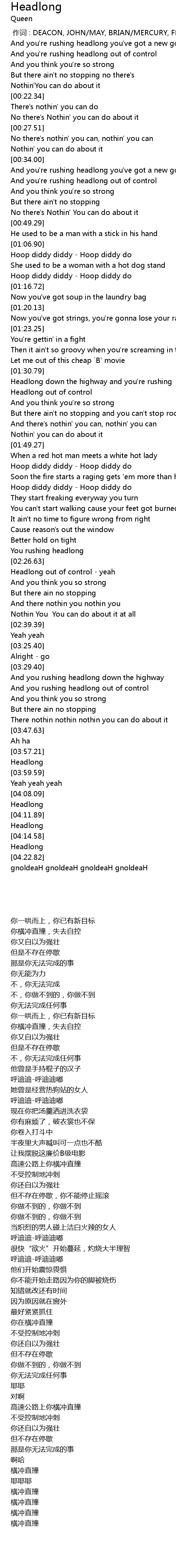 | [04:19.01] | Headlong |
