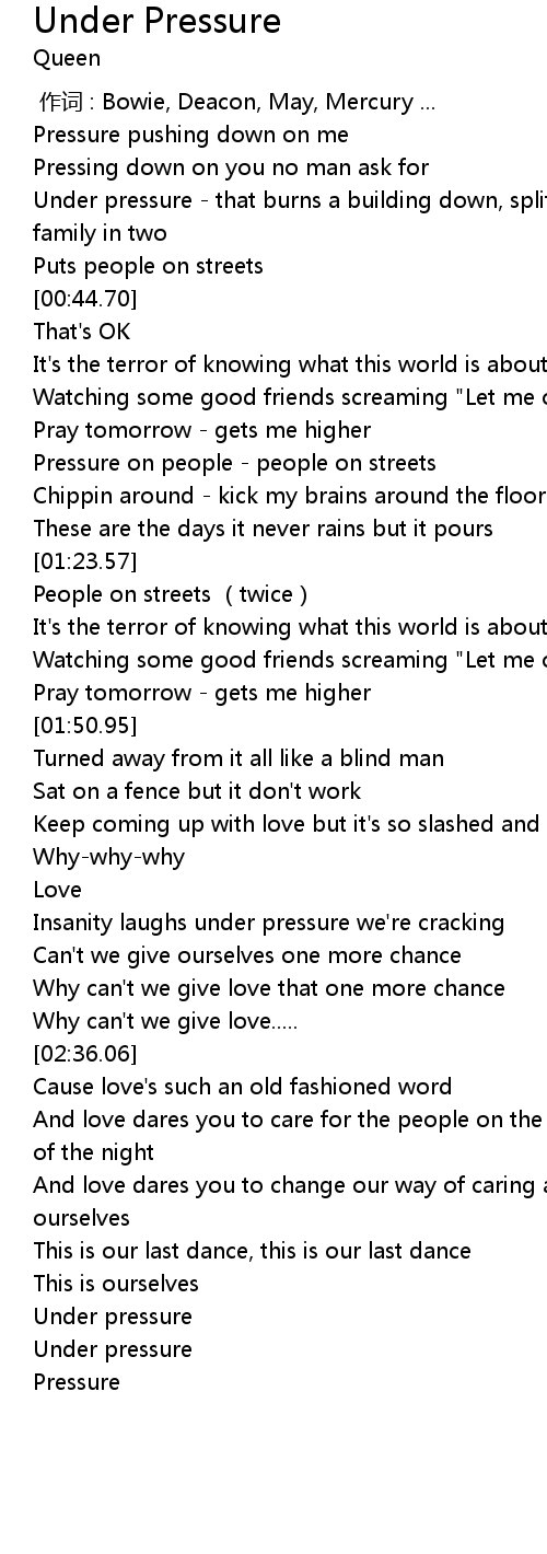 | [00:35.28] | Under pressure - that burns a building down, splits a |