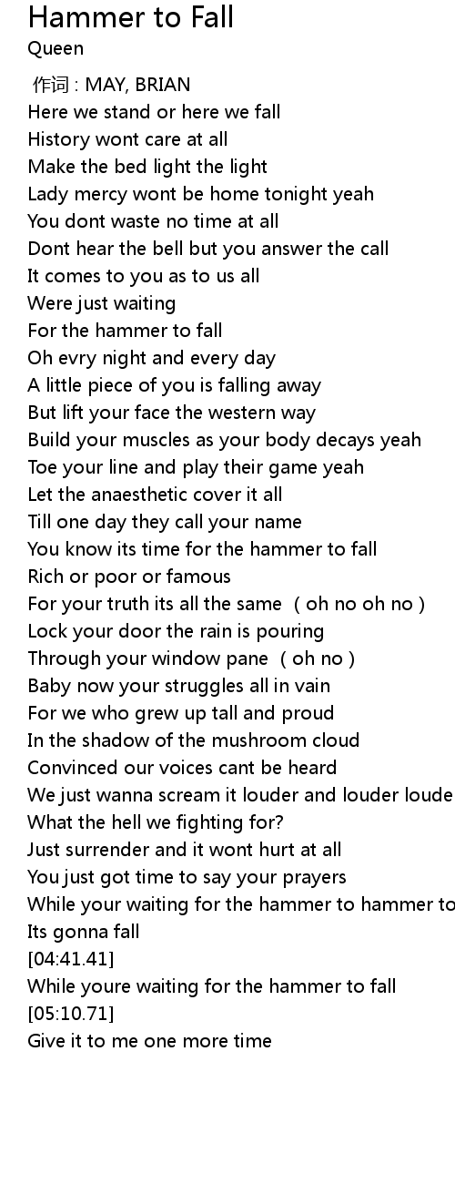 | [00:43.52] | For the hammer to fall |
