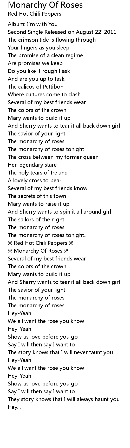 | [01:14.21] | The monarchy of roses tonight |