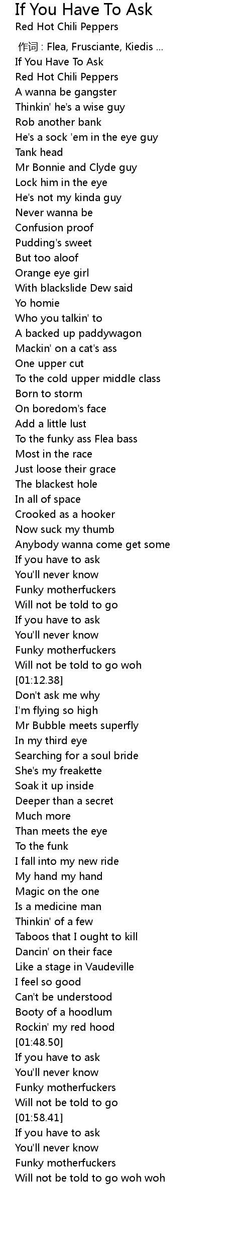 | [00:00.00] | 作词 : Flea, Frusciante, Kiedis ... |