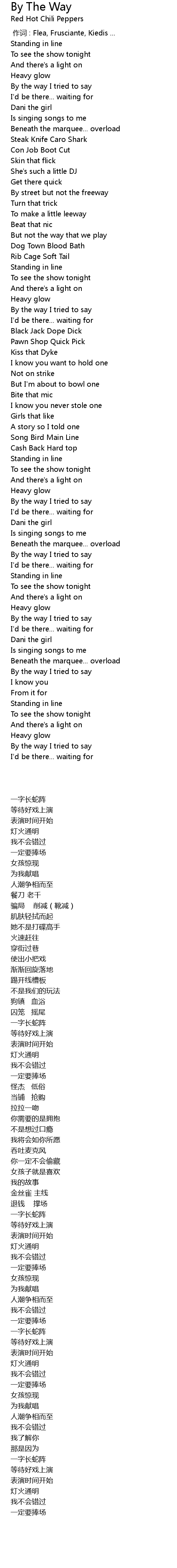 | [00:00.00] | 作词 : Flea, Frusciante, Kiedis ... |