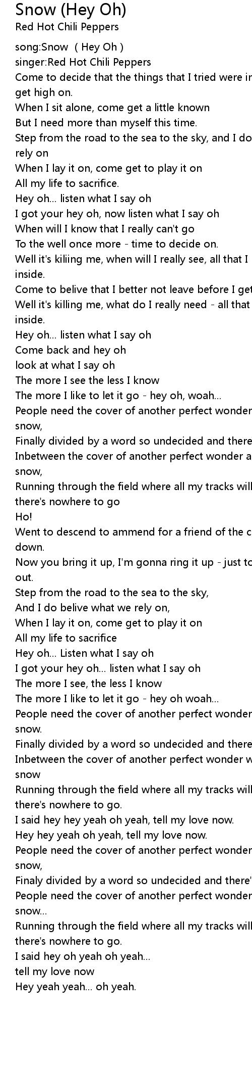 | [00:00.00] | song:Snow (Hey Oh) |