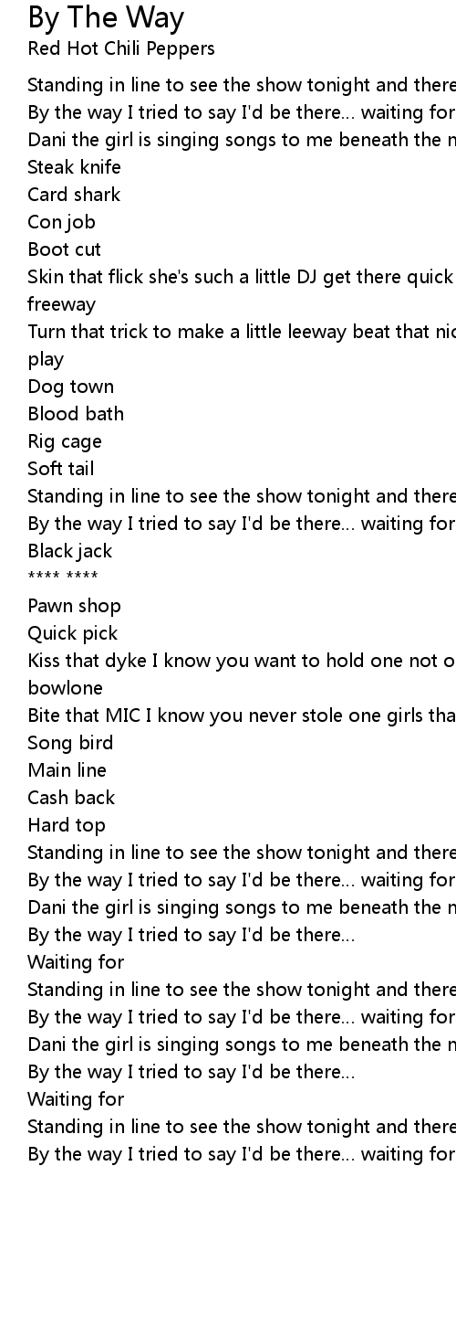 | Dani the girl is singing songs to me beneath the marquee overload | |