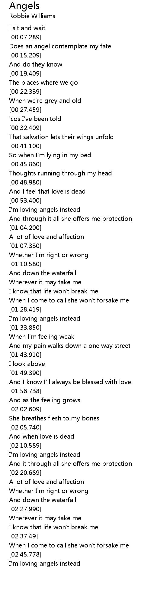 | [00:53.730] | I' m loving angels instead |