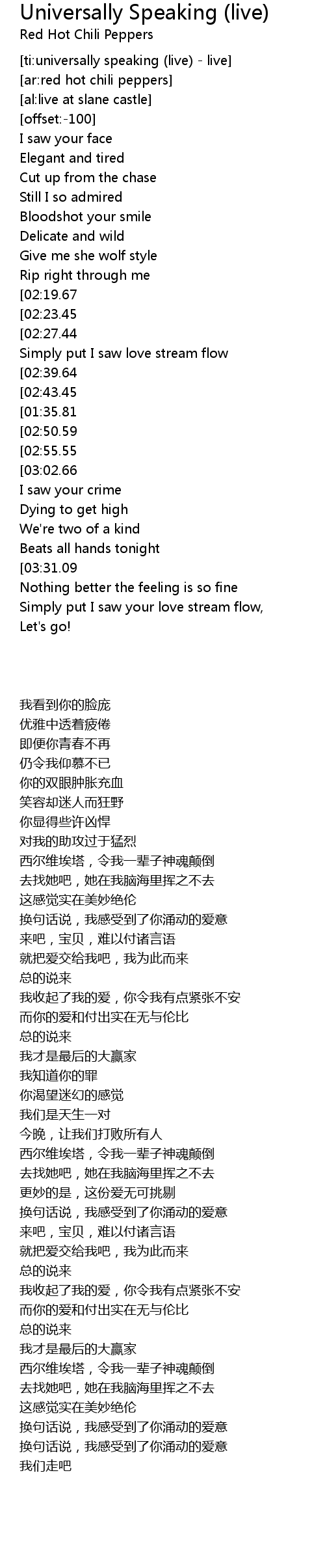 [ti:universally speaking (live) - live] |