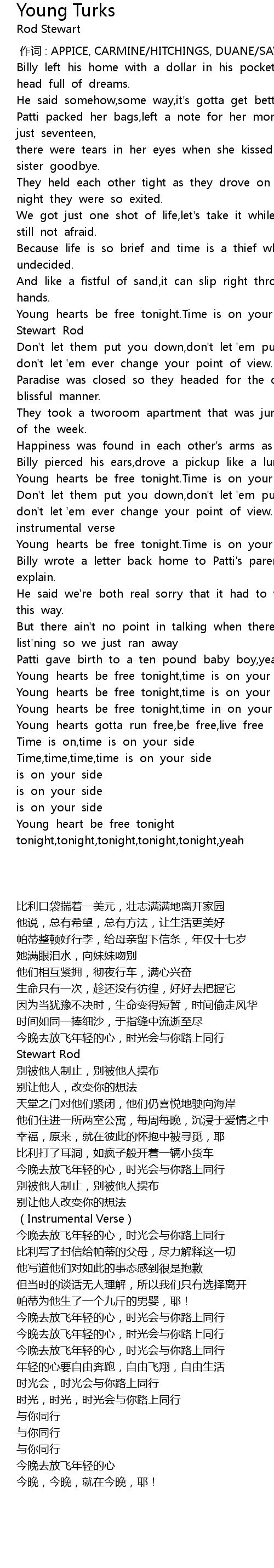 | [03:40.576] | Young hearts be free tonight,time is on your side. |