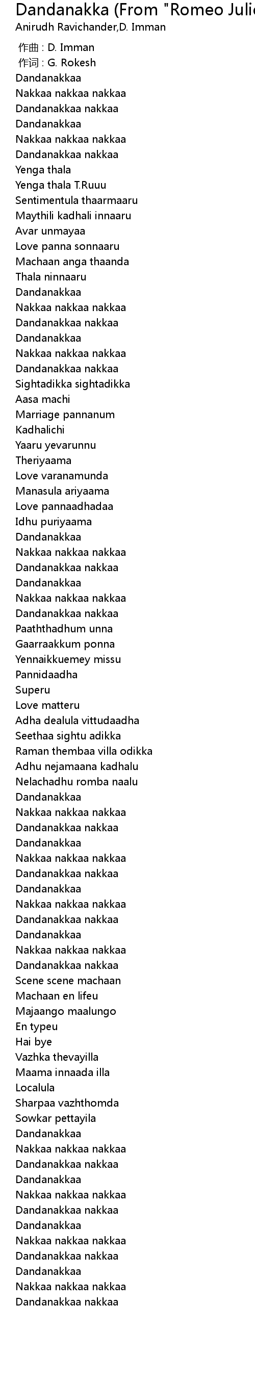 | 歌曲 | Dandanakka (From "Romeo Juliet") |