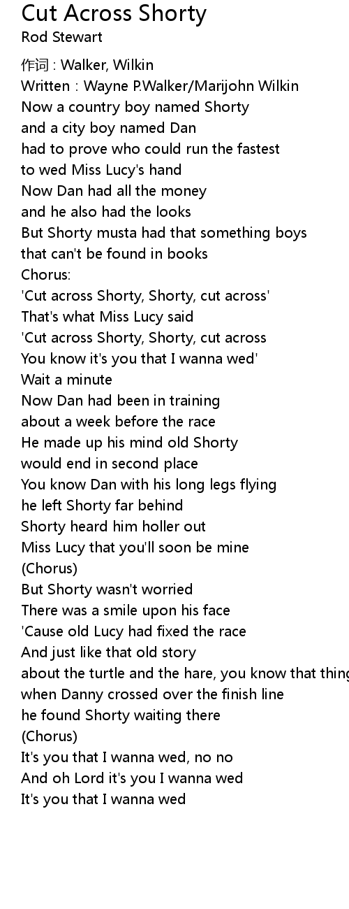 | ' Cut across Shorty, Shorty, cut across | |