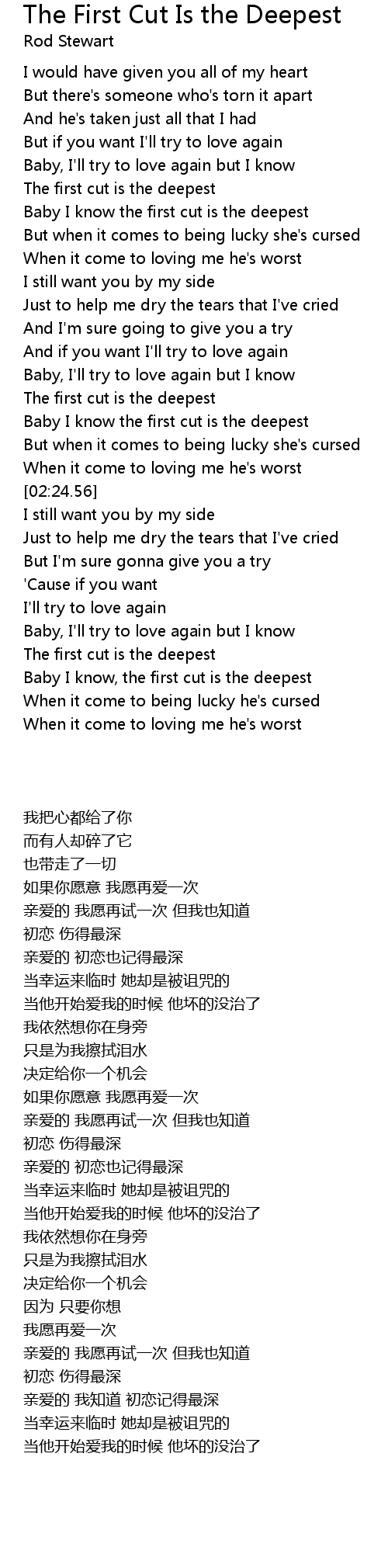 Baby I know the first cut is the deepest |