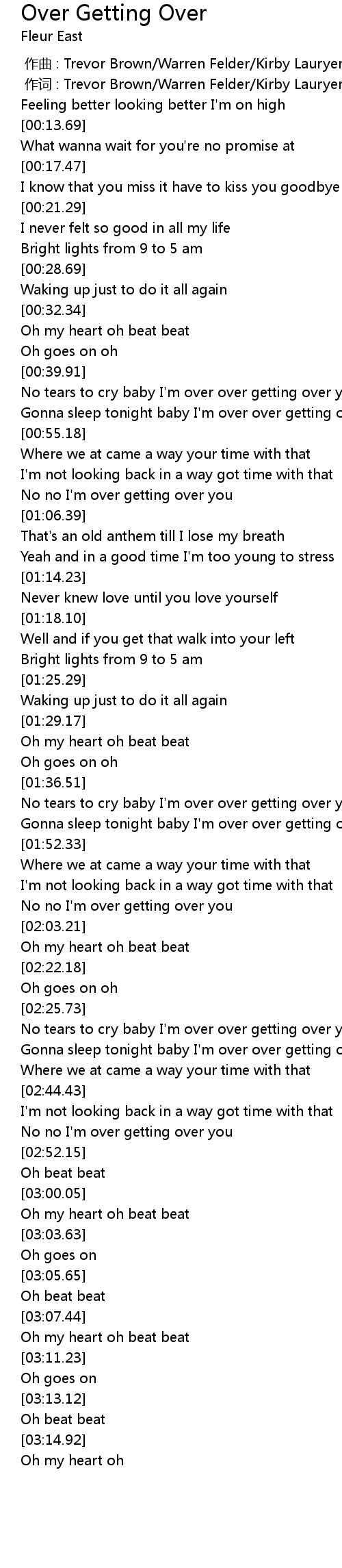 | [00:40.75] | No tears to cry baby I'm over over getting over you |