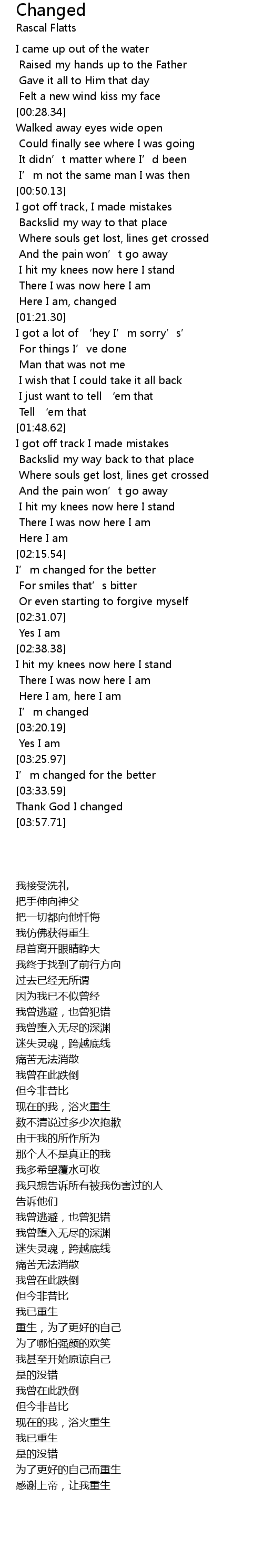 | [01:26.77] | I got a lot of ' hey I' m sorry' s' |