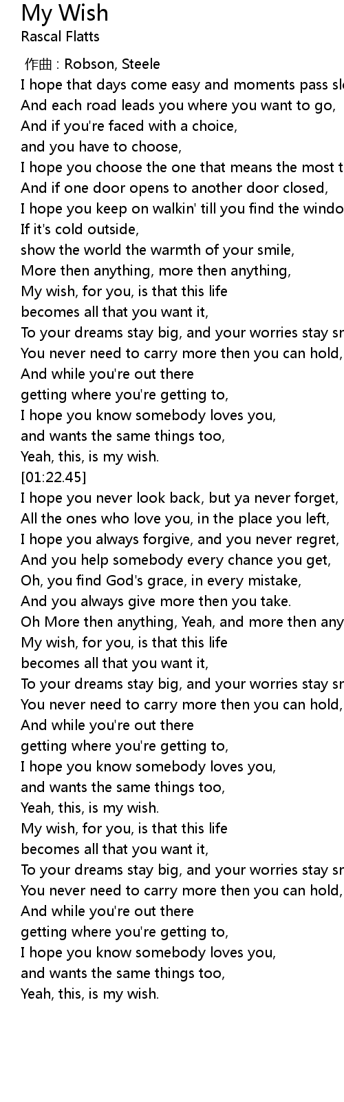 | [02:01.12] | To your dreams stay big, and your worries stay small, |
