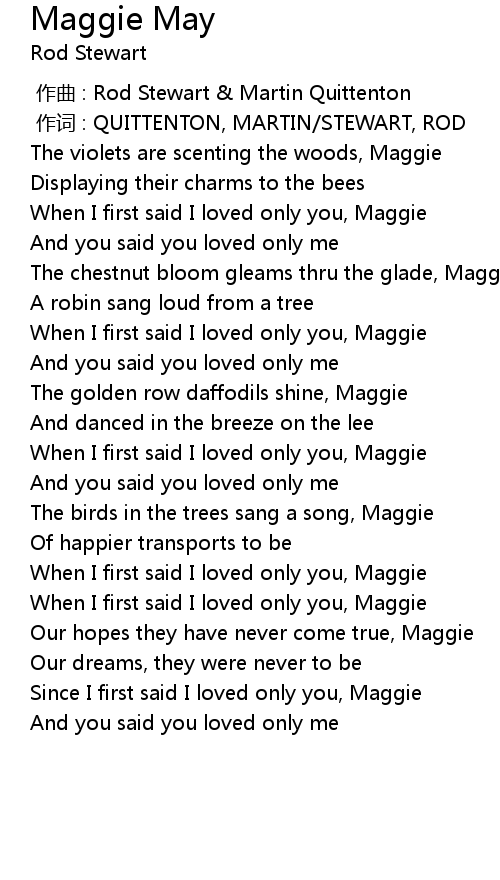 | [01:47.63] | Our hopes they have never come true, Maggie |