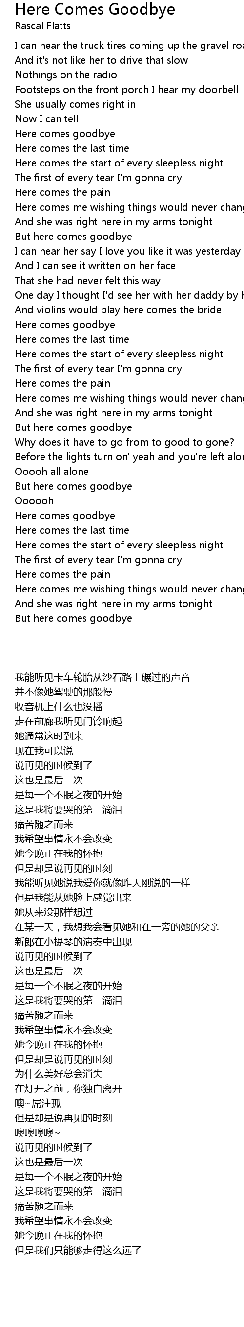 But here comes goodbye |