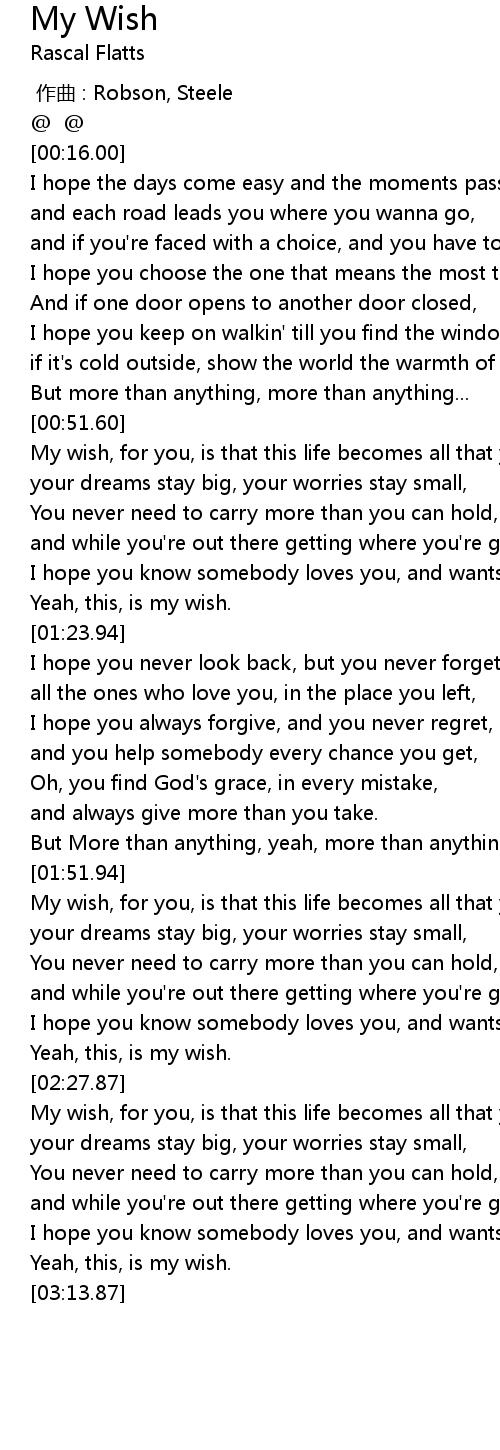 | [00:52.52] | My wish, for you, is that this life becomes all that you want it to, |