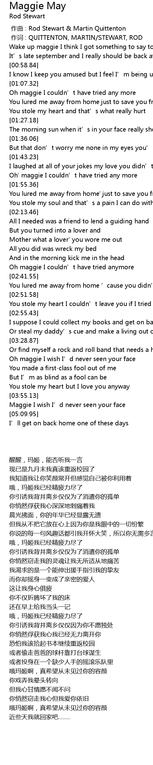 | [03:37.44] | Oh maggie I wish I' d never seen your face |