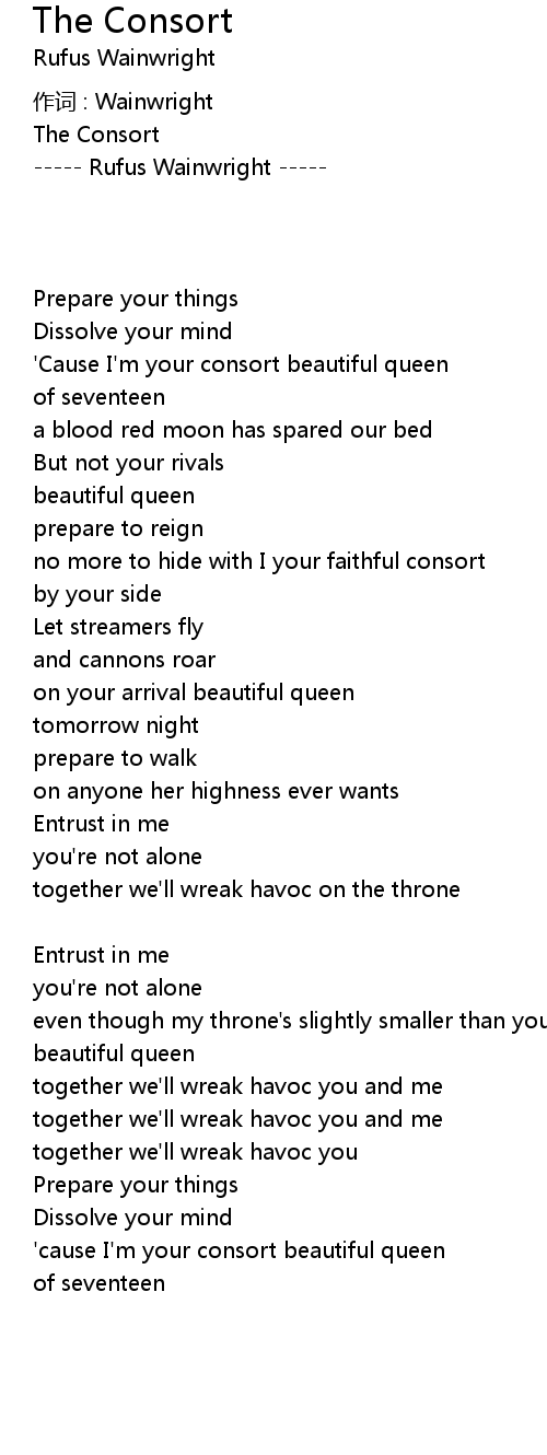 | ' cause I' m your consort beautiful queen | |