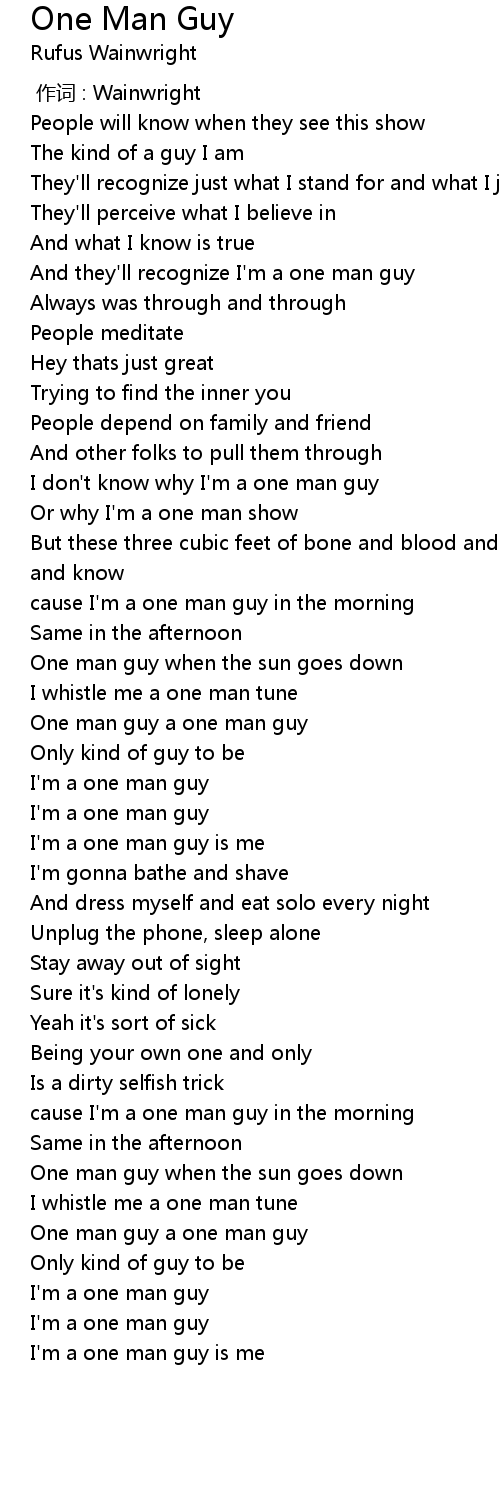 | [01:00.21] | I don' t know why I' m a one man guy |
