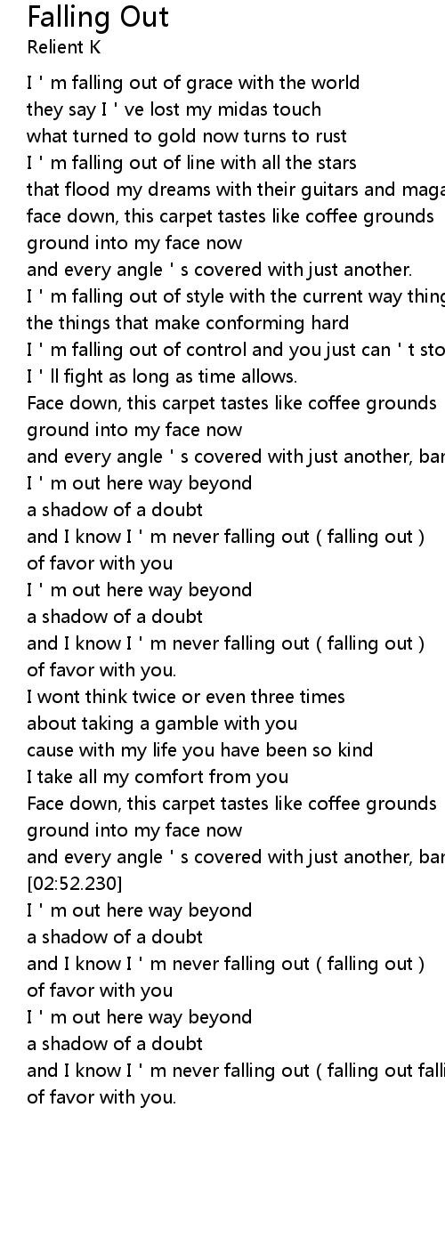 | [03:20.500] | and I know I m never falling out falling out falling out |