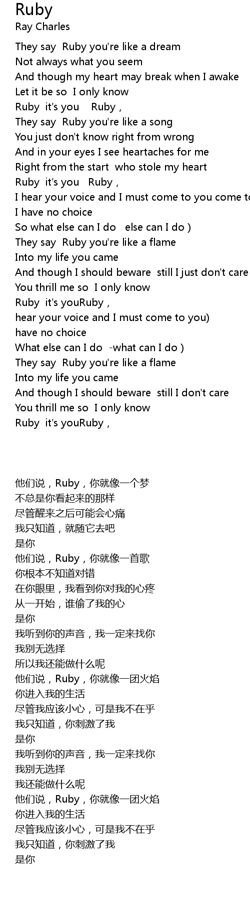 | [00:52.53] | They say Ruby you're like a song |